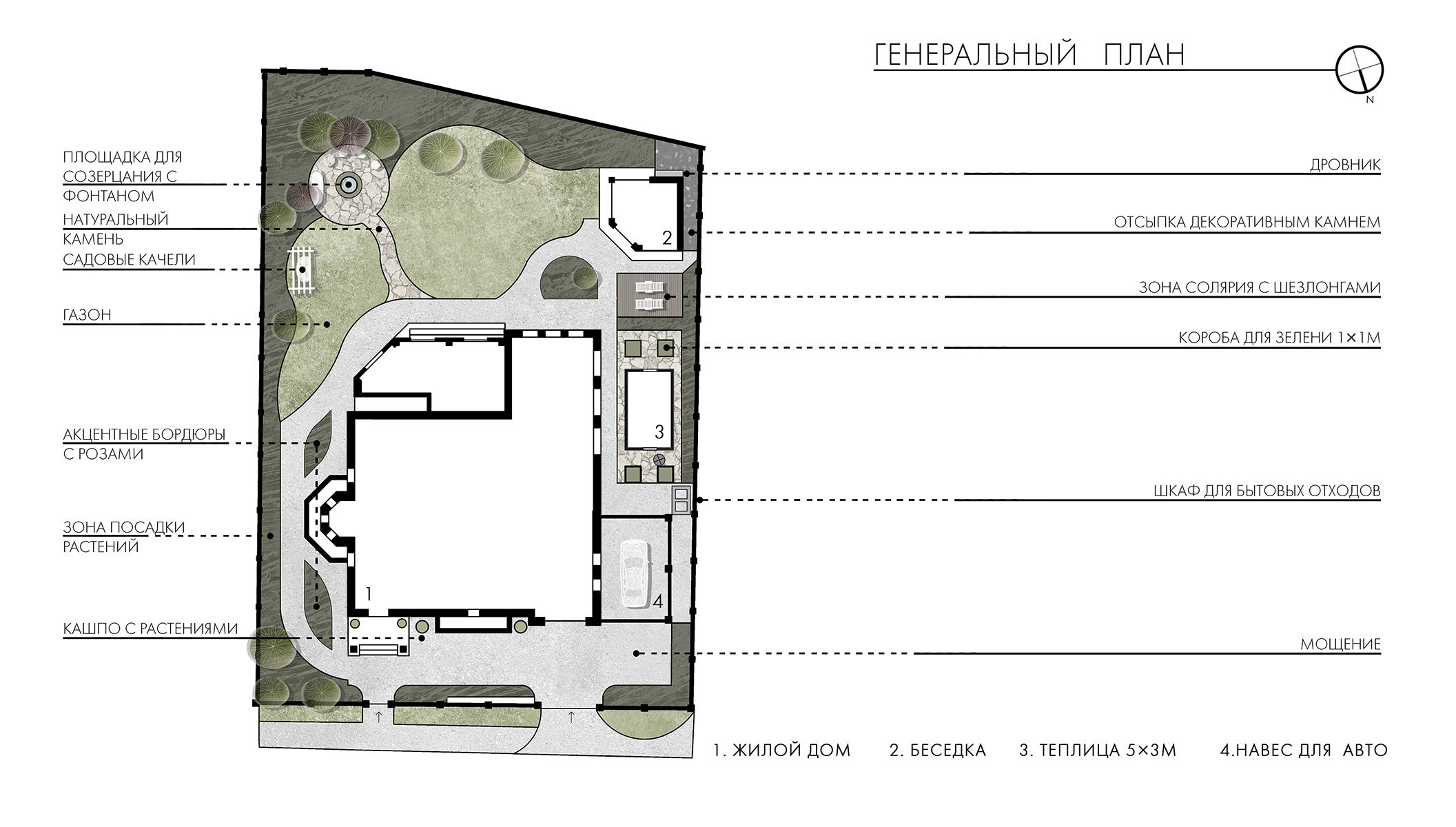 Основные пожелания: обновить фасад – применить современные материалы, логично пристроить к гаражу навес для 1 автомобиля, предусмотреть вместо непонятной стеклянной конструкции – зимний сад (обозначено на фото выше). Кровлю дома и конструкции, включая кровлю гаража, Заказчик менять отказался. Не хотел больших изменений снаружи, особенно тех, что связаны с отделкой внутри, кроме замены окон.