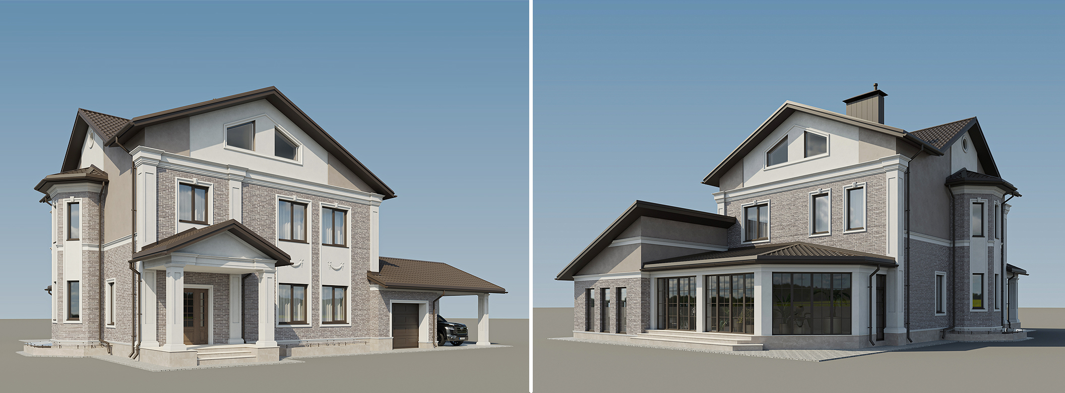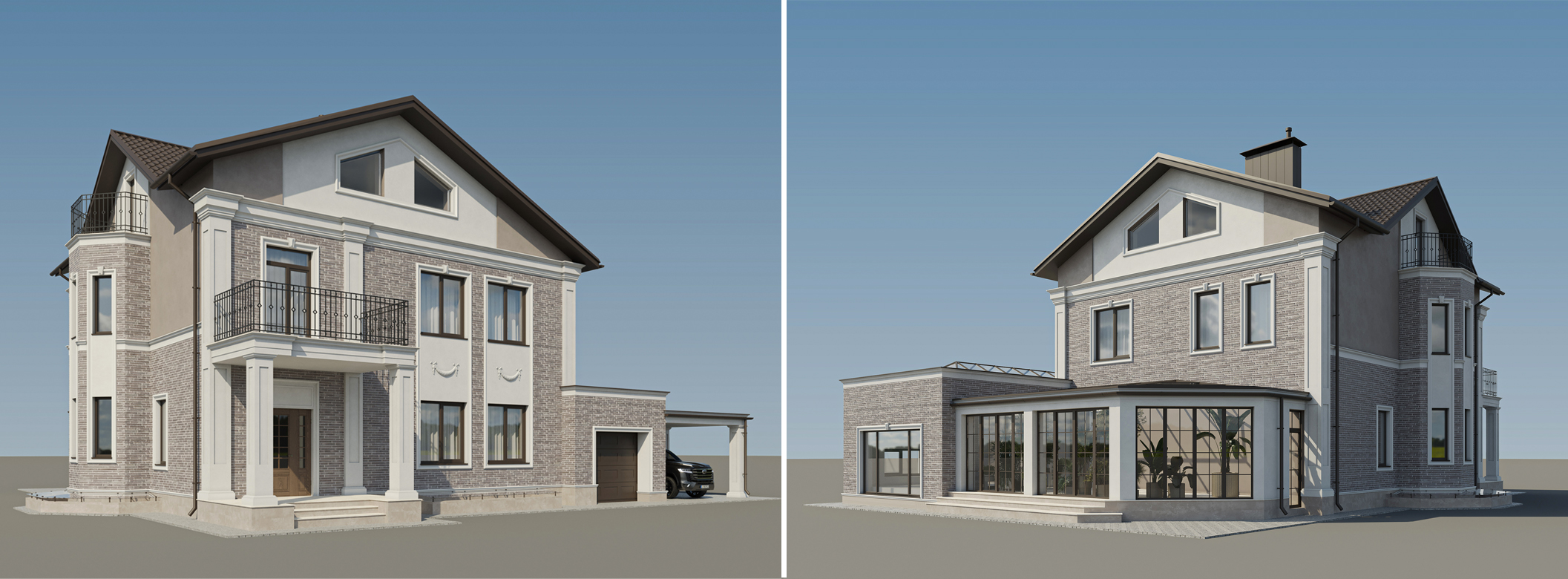 После обсуждения деталей и уточнения пожеланий Заказчика сформировали финальный вариант, который был принят за проектный, для дальнейшей разработки строительного проекта реконструкции дома, включая дизайн фасадов.