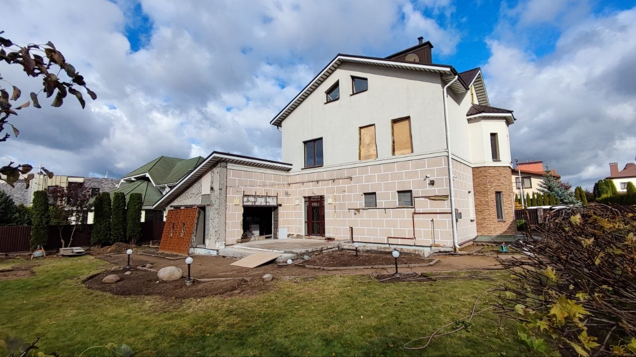 Конец сентября 2025. Запущены демонтажные работы и начата черновая отделка внутри дома.