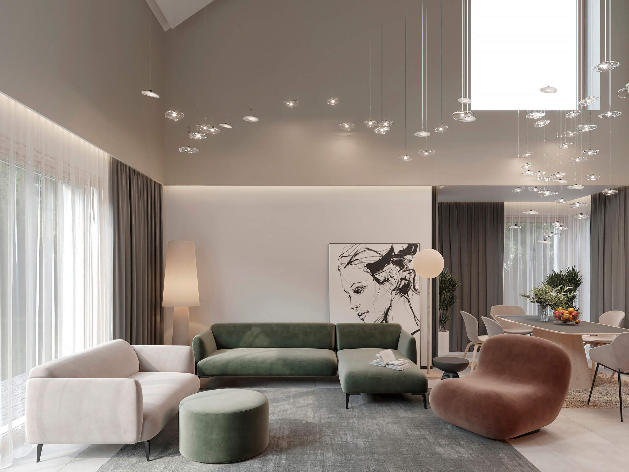 Создать современный, но уютный интерьер близкий к стилю минимализм, с акцентом на воздух, свет и функциональность.
