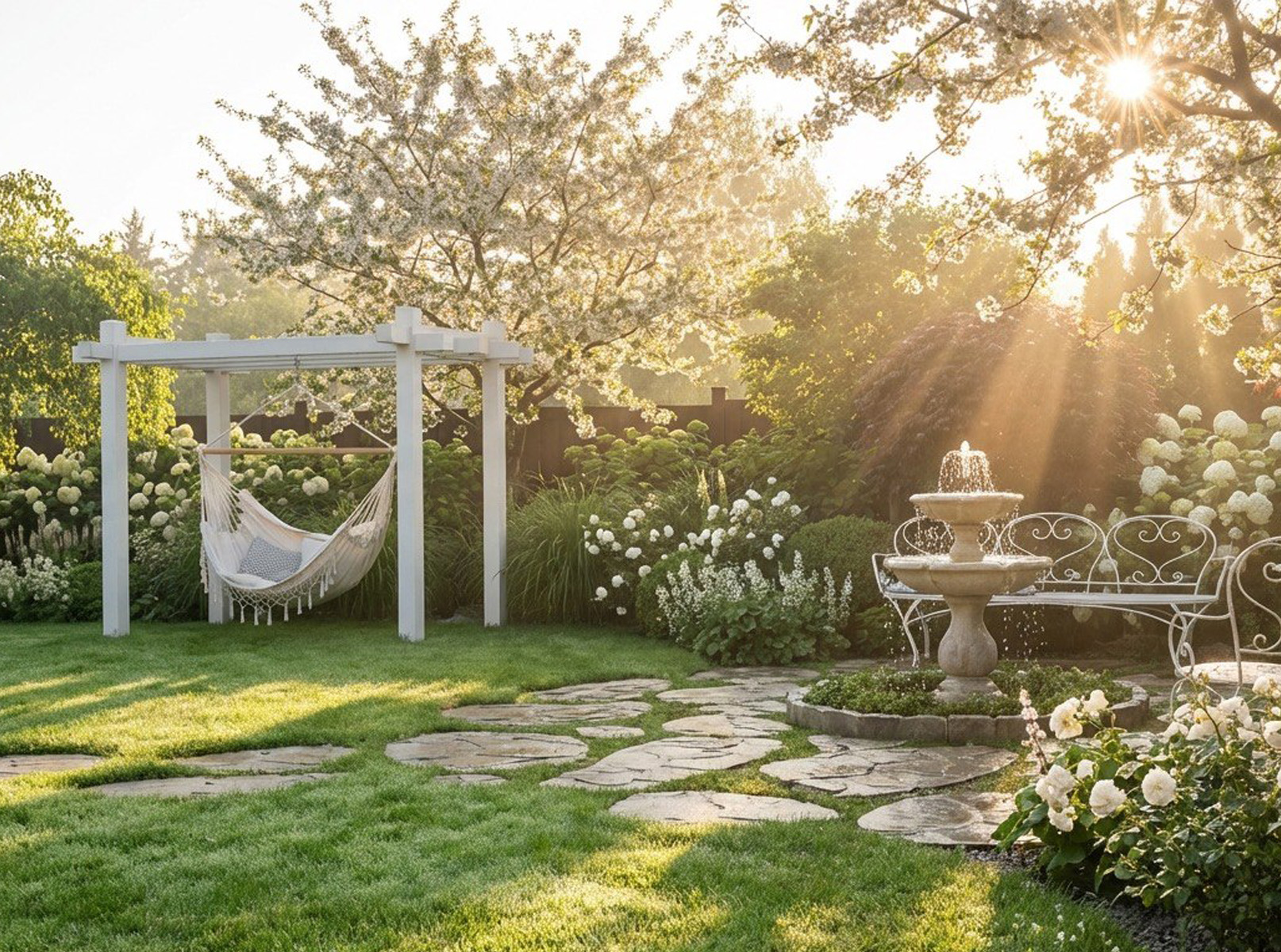 Учесть размещение на участке существующих плодовых деревьев, организовать зону отдыха с фонтаном, небольшой огород и теплицу.